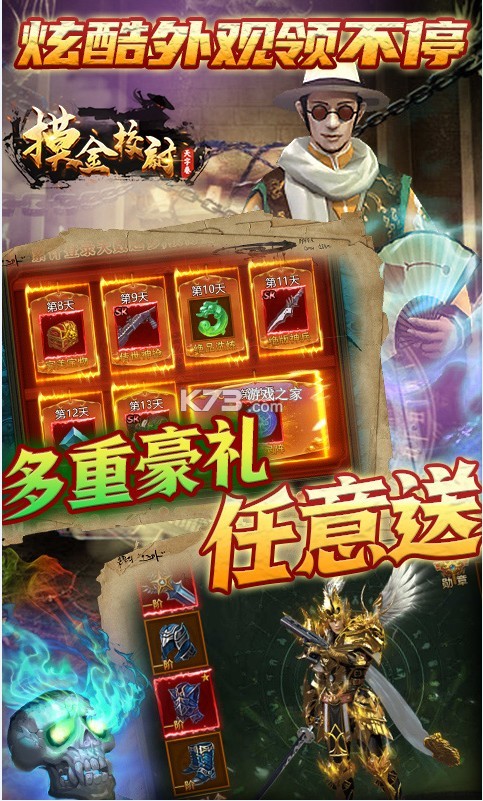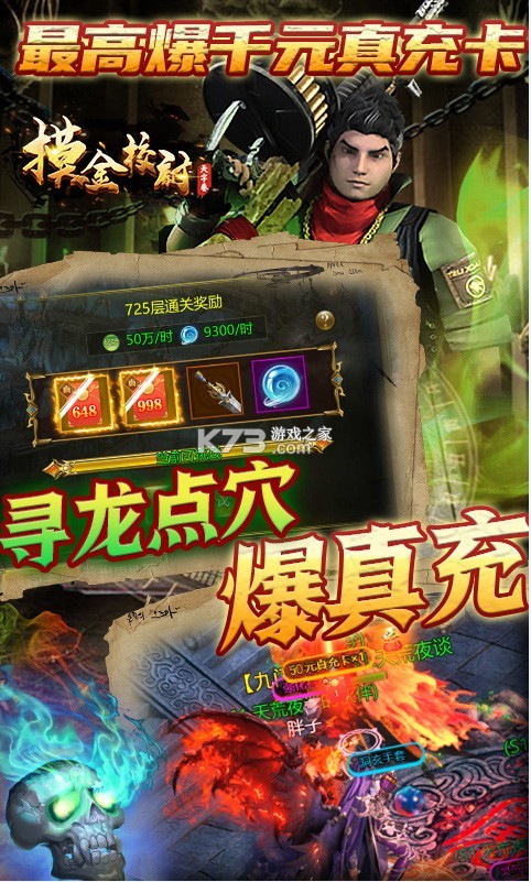 《摸金校尉之天字卷爆真充版》是一款放置类的角色扮演游戏,闯关免费爆真充,打怪最高可爆千元真充卡,签到免费赠送真充,激活特权还有双倍奖励领取,充值还有多倍返利直接免费领取。