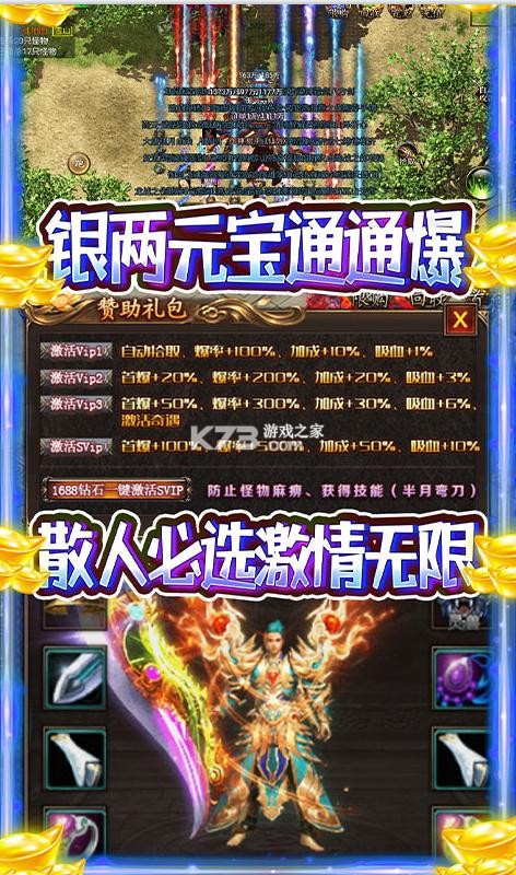 ★赞助礼包免费拿,自由交易无限制,极品装备自由买卖,回归原汁原味传奇;