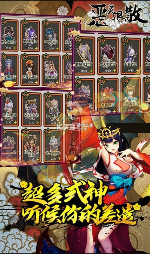 诸多日式经典可爱的式神等待您解除封印,不同的式神特有的技能各有不同,可战可奶可抖M,前路凶险,魍魉魑魅,绝不让你一个人去战斗。