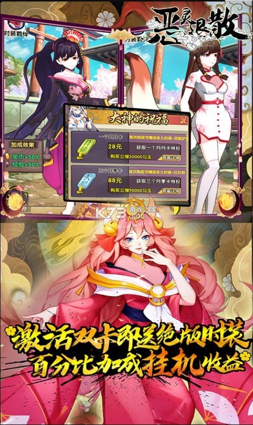 28元激活月卡,立刻获得永久时装-灵狐护士,每日领取勾玉,激活无限快速战斗特权。