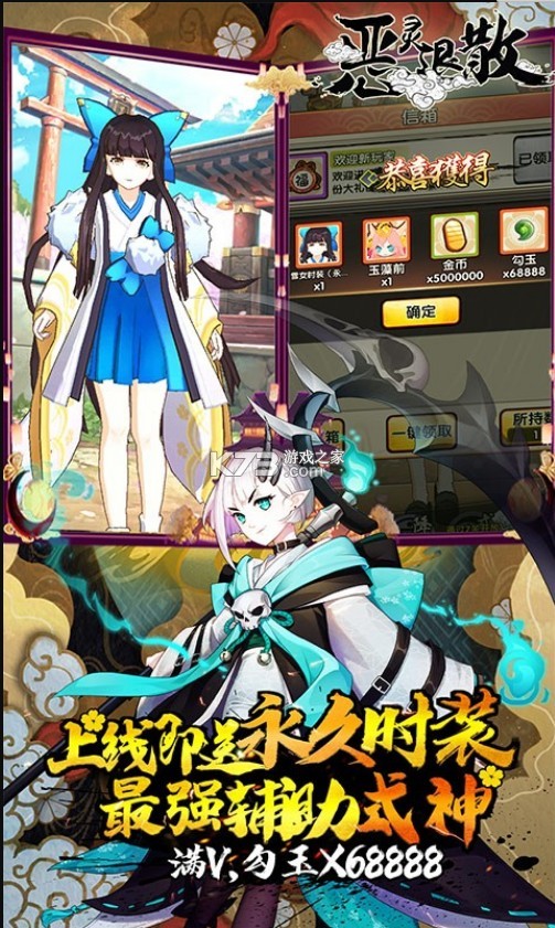 登录即送永久时装-雪女,最强辅助式神-玉藻前,满VIP,勾玉*68888,金币*500W