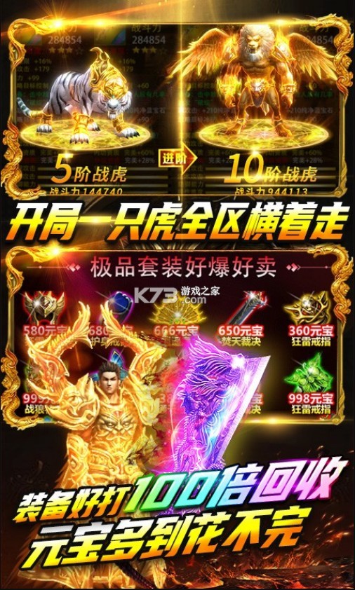 2.创角就有100000000元宝,直接买买买,爽到飞起,超级白虎,打怪无压力