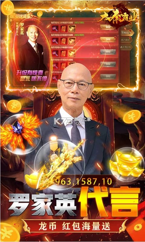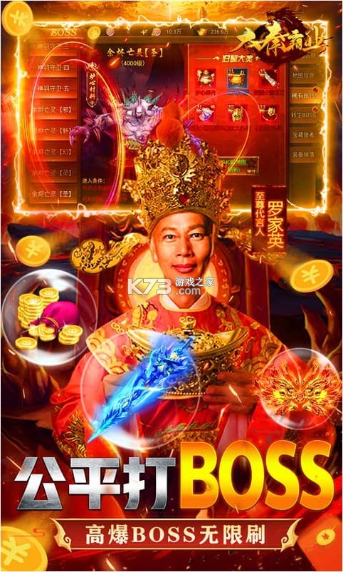 《大秦霸业(送万充终宠)》是一款经典传奇游戏,由罗家英倾情代言,送海量红包助力,免费领首充。上线领十万龙币,千万元宝。宠物直升终极,轻松打BOSS,高倍爆率,爆海量充值红包。游戏BOSS全部免费,无限畅打。轻松提升等级,领万元充值。更有丰富多彩的活动与副本玩法,提升个人体验与团队协作能力。大秦霸业传奇是一款出色的经典全新角色扮演类传奇手游。神装全靠玩家们自己进行刷,大秦霸业传奇中还有超酷炫的培养机制,战斗力加成爆表。攻速超变,帮助侠客们快速的斩杀敌人。众多武将云集于此,扩充疆域争夺名城,提供的是大秦霸业手游下载,这款游戏以传奇复古玩法为主,加入了三种不同的职业供你选择,免费享受指尖沙城争霸,即时竞技手感刺激,爱玩传奇的别错过了!