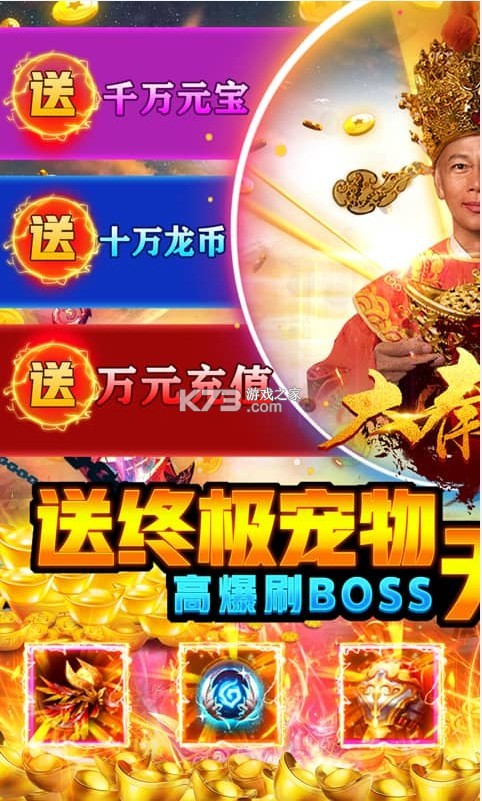 《大秦霸业送终极宠物版》是一款热血的传奇复古游戏,游戏所有boss全部免费打,还能直接爆海量的红包,轻松的提升等级来免费领取真实充值,还有全新的宠物系统,开启直接免费升终极。