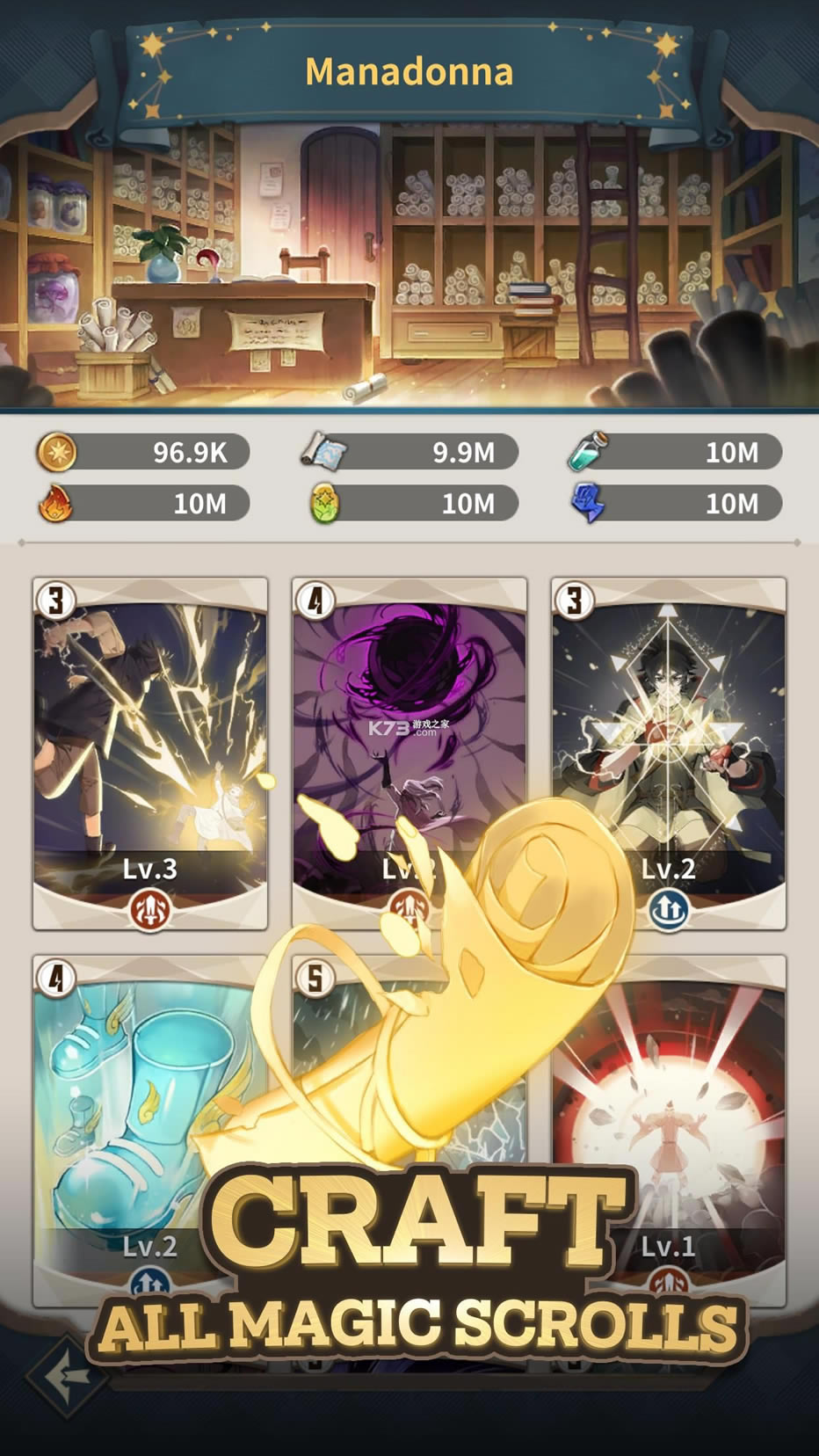 - 收集并强化从魔法到黑魔法的12个魔法卷轴!