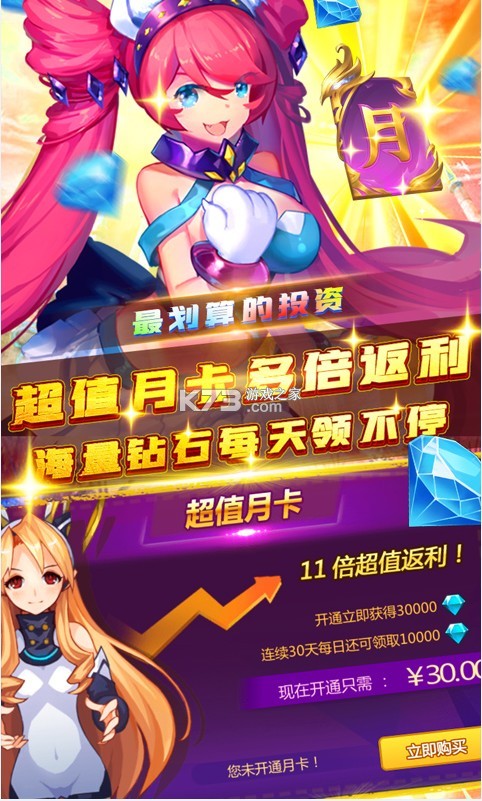 4、超值月卡11倍返利,海量钻石天天送