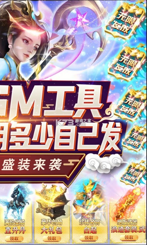 2、登录送GM工具,顶级坐骑,超级时装免费送
