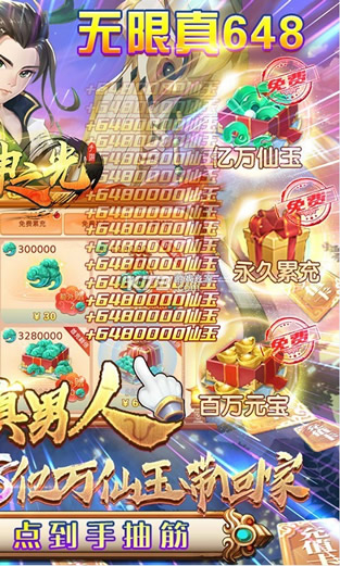 4.每天满足规定在线时长即可免费获得若干次点充648元真充次数,并在规定时间内根据点击频率来获取若干次648元充值。