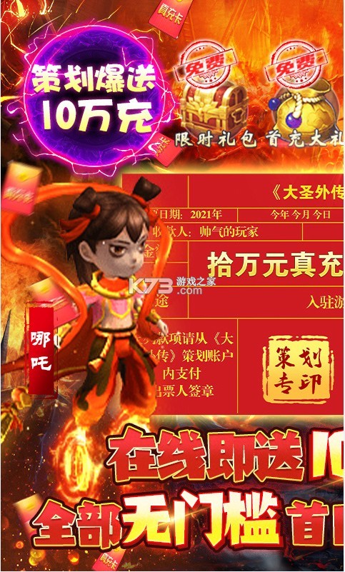 海量元宝超强福利,孙悟空、牛魔王、二郎神任你挑选。