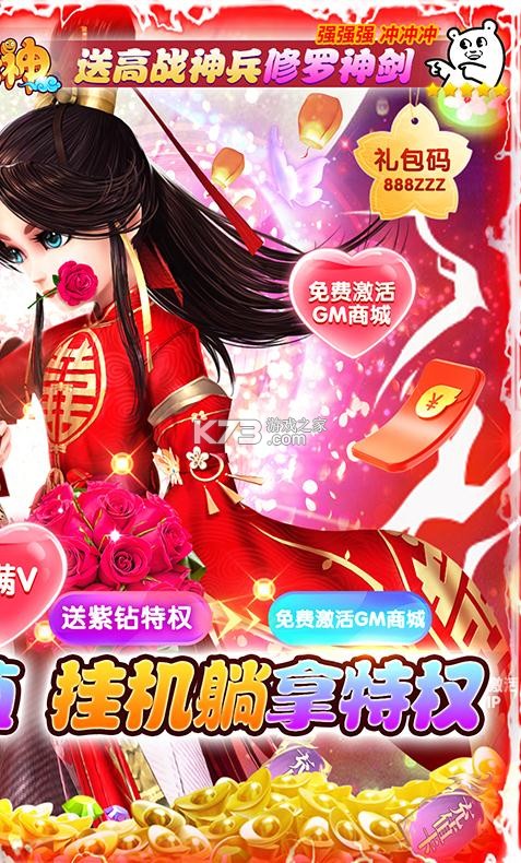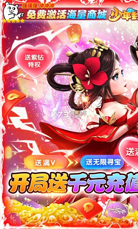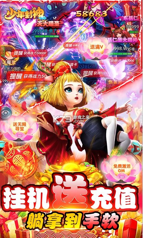 《少年封神》免费送神剑,免费合成充值卡,充值躺赢领到手软,领取超低价海量资源,永久紫钻特权,svip礼包超级丰厚,这里的战力全部白送,躺着也能拿特权,寻找你心目中的伴侣。