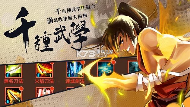 【上千武学】: 在这里,共有1000多种武侠迷耳熟能详的经典武学可供选择。初入江湖的小虾米可集众家之长于一身,通过战斗与历练不断地磨砺自己的武学,最终成为名动江湖的一代大侠。