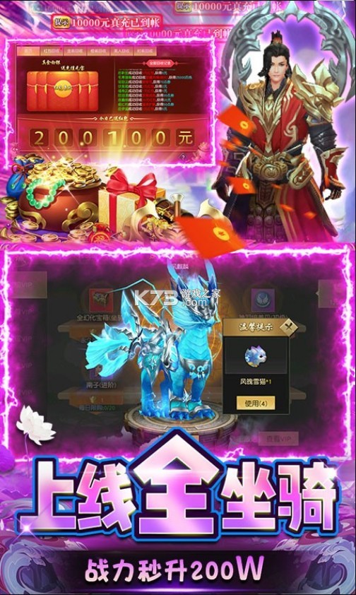 ★上线就送超级VIP、168888元宝、全套坐骑幻化