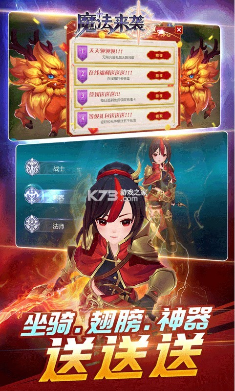 冲等级豪礼相送,达标领天使神翼;开服角逐排行榜,抢高战三星神装;冲级活跃领好礼,免费领千元钻石;首充赠永久时装,开超值套装宝箱。