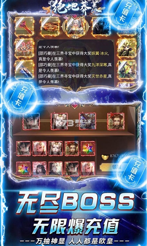 4、BOSS永久无限爆充值,神装宝石百倍爆率!万抽神显人人都是欧皇!签到无限领真充!
