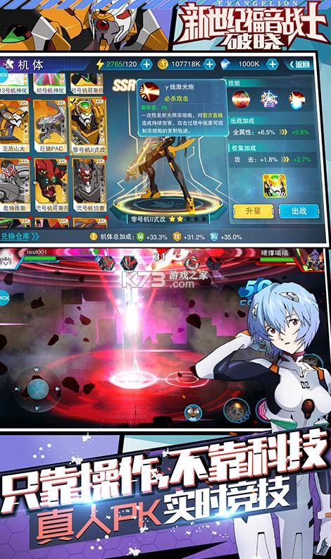 《新世纪福音战士破晓》玩家们灵活的进行pk战斗玩起来实在不错,不断的提高自己的战斗力,华丽的技能高燃爽快感,收集你所喜爱的机甲驾驶参与真实的机甲大战,超多特色机甲来袭,只拼操作不拼氪。