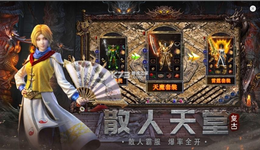 年度重磅复古巨作,全新版本,经典热血!高自由度游玩方式,紧张刺激的副本体验,极品装备收集乐趣,跨服pk,激情团战,散人霸服,爆率全开!