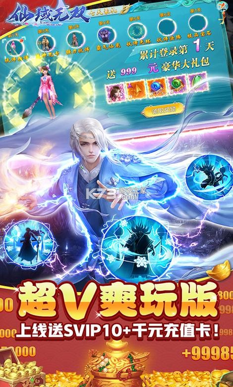 《仙域无双》上线送超变神装、无限元宝和满阶战骑以及超变套装的内服号,送补贴,一键领取内部福利,送svip10和千元真充卡,每日领直升丹,送钻石仙尊,爆神器领取绝版红武神装,超多好礼天天领,让你秒变高富帅。