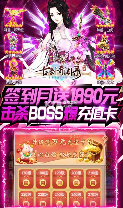 ★签到每月送1890元元宝充值卡,击杀BOSS也可获得大量的元宝充值卡!