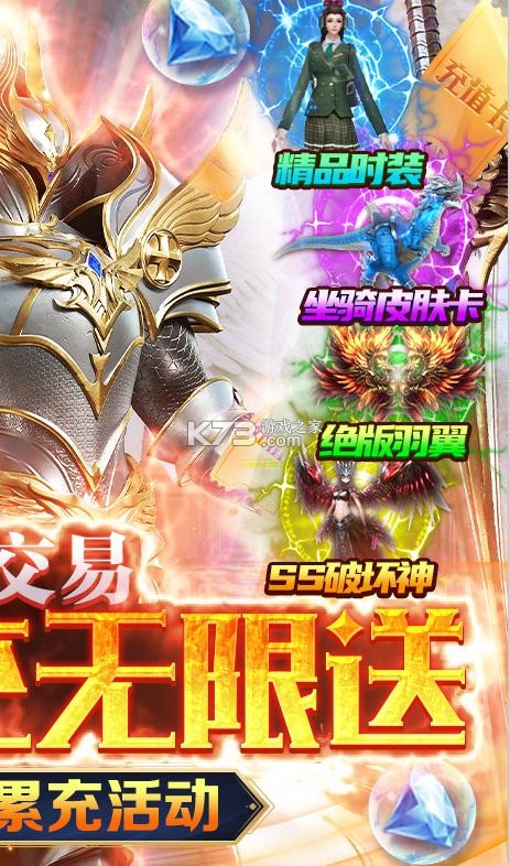 2021年福利手游《天使降临-无限抽真充》是一款魔幻风格的角色扮演手游。游戏上线就送GM神装,VIP15,特权豪礼随便拿!