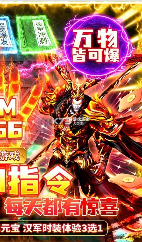 上线就能免费领取各种钻石宝石福利。众多的武将属 性,每一个都有自己独特的技能,展示的特色效果让你更加的沉浸,精致的美术画面通过炫酷3D效果为玩家呈现了一个人魔大战的历史战场。
