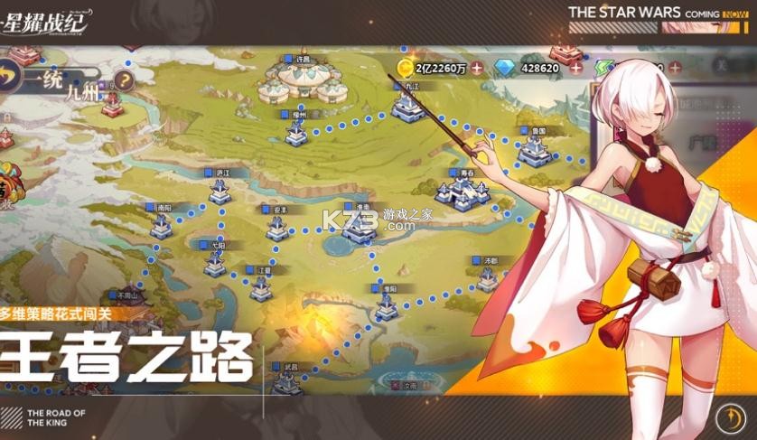 《星耀战纪》是一款以架空三国世界为背景的超必杀策略激斗卡牌手游。 由于妖魔的入侵,这个世界无时无刻都面临着终焉末日的威胁。 星使是拥有统御星灵能力的天命之人,将率领星灵们从不周山出发,一路过关斩将收复城池,击败魔王拯救演义世界。 玩家将重回乱世,并与星灵们一齐共同冒险,直面新的挑战