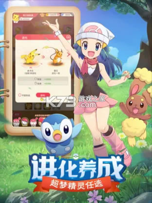 5、野外冒险捕捉海量精灵,进化升级收集图鉴,可以结识好友相互交换。