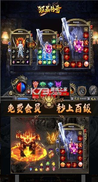 以传奇复古画面为貌,带你回归传奇年代!战法道三大经典职业,点燃游戏新激情!更有“英雄”玩法加入,实现三大职业六大合击盛况,同时增加了游戏移速、攻速、爆率,只为带您体验最棒的复古合击版本!传承典范,匠心制作,传奇不死,青春不灭,2021《狂暴传奇》邀您来战!
