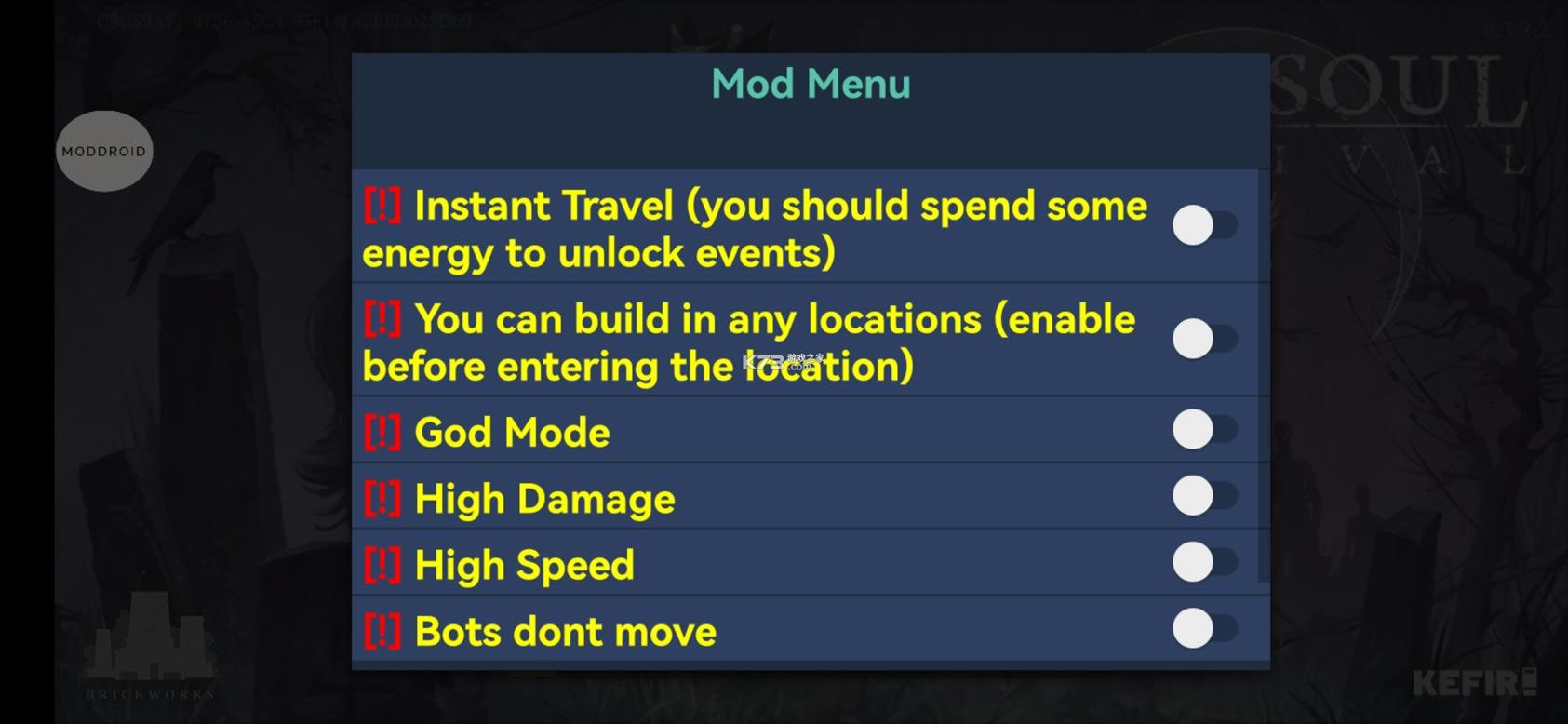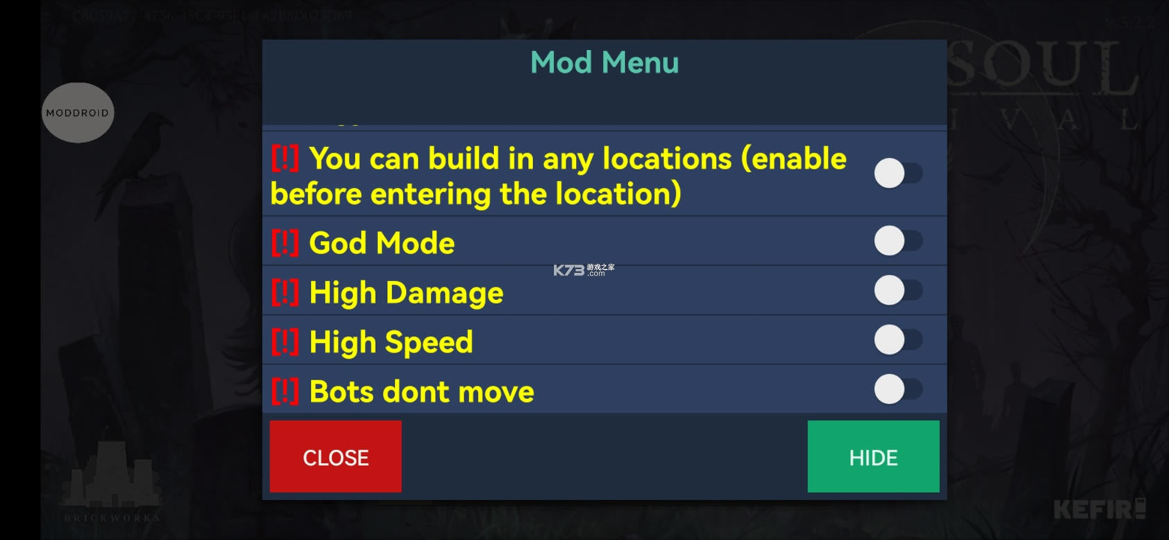 MOD菜单破解版,使用前请开启游戏的悬浮权限并在进入游戏后点击左上角图标开启对应的修改选项,功能如下: