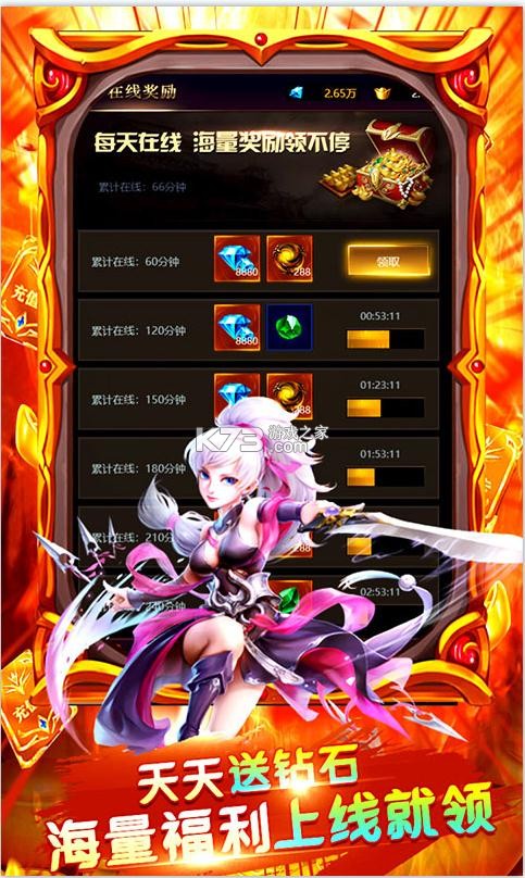 ★每日登陆,累计在线领取海量钻石