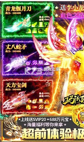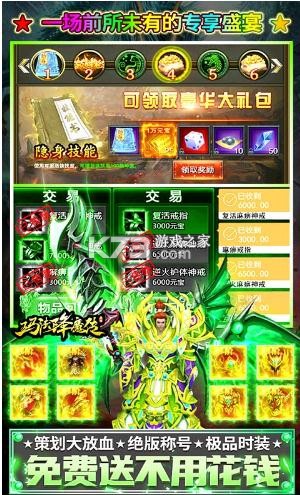 《玛法降魔传-高爆送无限》上线送SVIP20,688万元宝,16888钻石,88888战神币,海量福利等你来拿李小龙时装(体验),血色之路座驾(体验),超前体验极品时装座驾,跑车跑图的体验感不要太好,每天登录还可以领红包盲盒,金额随机,看人品的时候到了,特色30层创世地图,大量boss等你来收割,顶级装备全靠打,不花钱照样满神装!