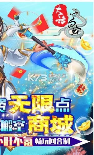 《大话白蛇》是一款仙侠类回合制手游,突破传统回合制观念,搭配各路萌宠,以一控三助你横扫三界仙魔!充值免费无限点,一分不充搬空商城,让你体验内部福利号的游戏快感。各大职业,相生相克,你的人生由你主宰,你的命运由你掌控,只为让你体验经典非凡的修仙之路!