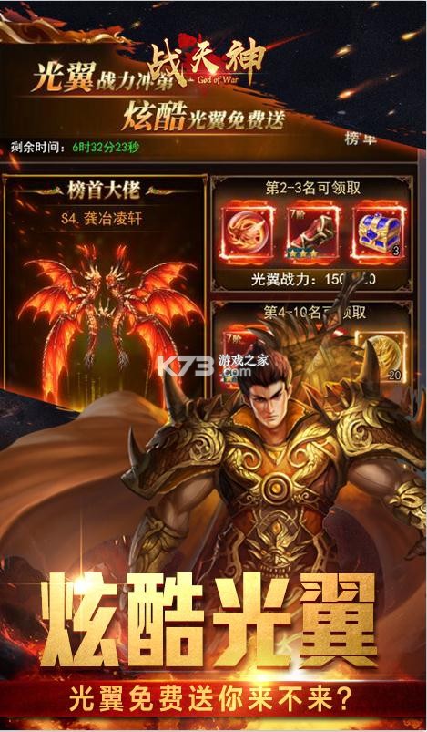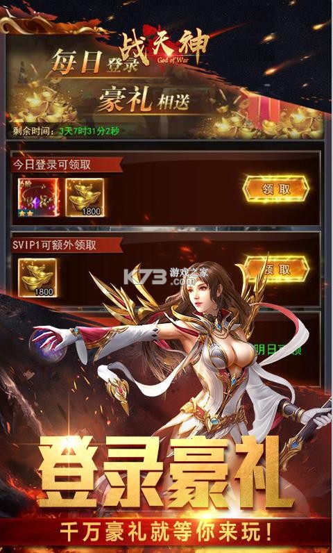 《战天神》上线送元宝,首充送双倍的充值,vip礼包免费领,送超级vip海量的福利领取,绝佳的游戏战斗,逼退对手,击杀精英怪,丰富多样的装备绚丽的技能,酣畅淋漓的战斗体验感,给你绝佳的体验,还原战法道带来无限的战场。
