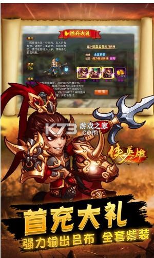 《侠义英雄》七日登录送马超,每天领超强的福利,拥有超强的必杀技能让你的战斗一气呵成,呈现前所未有的三国新体验,实时的pvp的战斗,公平竞技玩法超级的出色,没有最强的武将只有最强的玩家,招兵买马攻略城池。