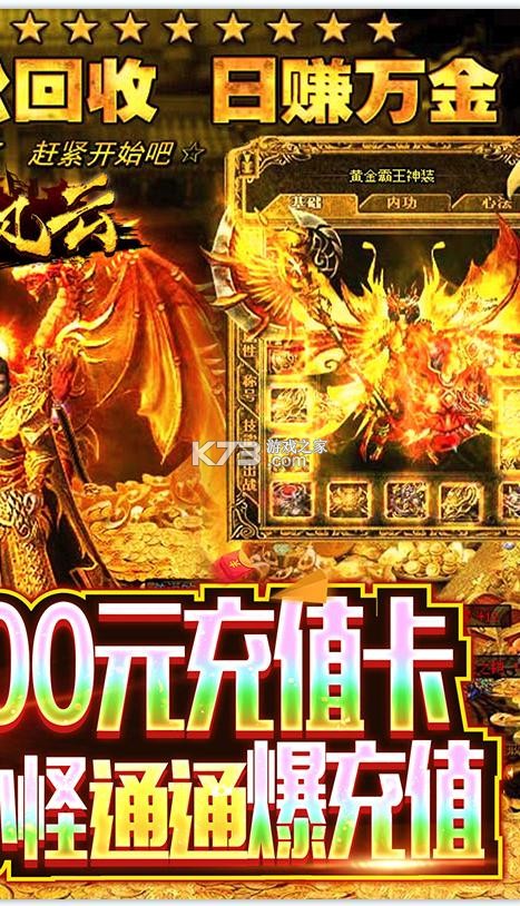 ★后缀说明:游戏中,BOSS,小怪超高几率掉落不同额度充值卡,充值卡碎片,一天轻松打上千,最高打1万元充值卡;充值卡可激活活动哦!