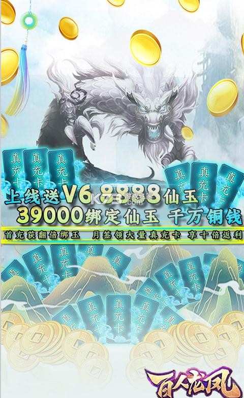 ★上线送VIP6,8888仙玉,3.9万绑定仙玉,1000万铜钱。