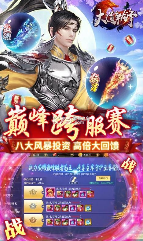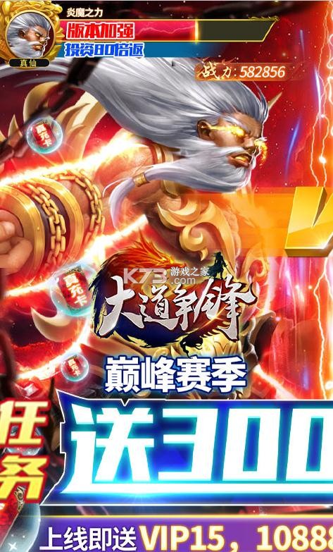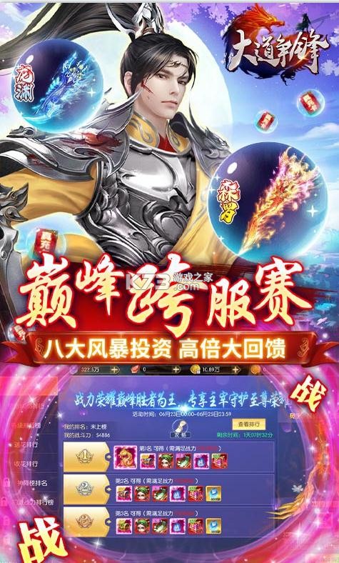 《大道争锋》无门槛送真充福利,巅峰跨服赛,上线即可送vip15,仙币花不停,傲视群雄在线回收绑定仙币,领取极品的奖励,投资拥有80倍收益,领取充值和疯狂宝箱,每天让你花的更爽快,上线领取福利吧。