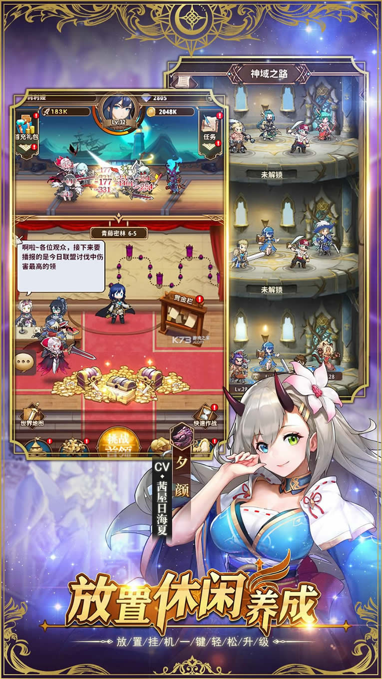 【轻松惬意的放置玩法】 英雄们爆肝打工全年无休,冒险、战斗、讨伐、委托、远征,甚至是宅家、沐浴、种田和摸鱼,您能想到的英雄们通通都会,而且全自动!庭院系统全天开放,独属于您与英雄的私密空间,亲密互动、信件往来,更有海量家具任您挑选,打造出专属于您的伊甸乐园!您是否也想给自己放个假,哪怕只有一分钟?别怕,您的肝,就由您的英雄们来守护!