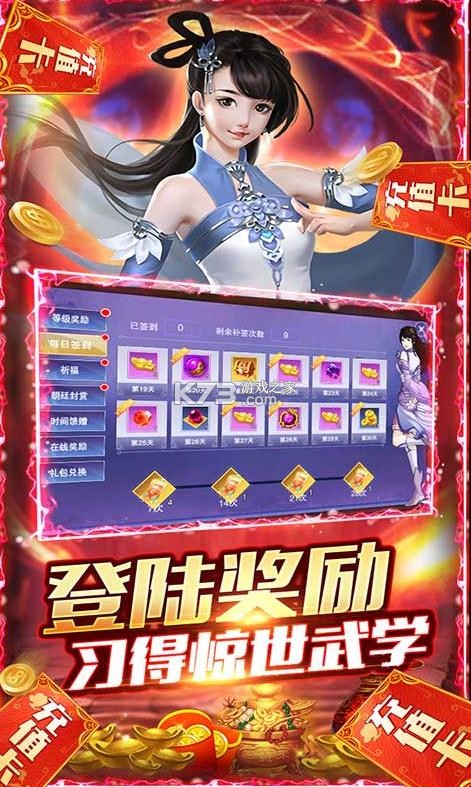 ★等级馈赠,先到先得。每日签到,人人有份。免费获得大额充值、绝世武学,海量养成资源全民放送!