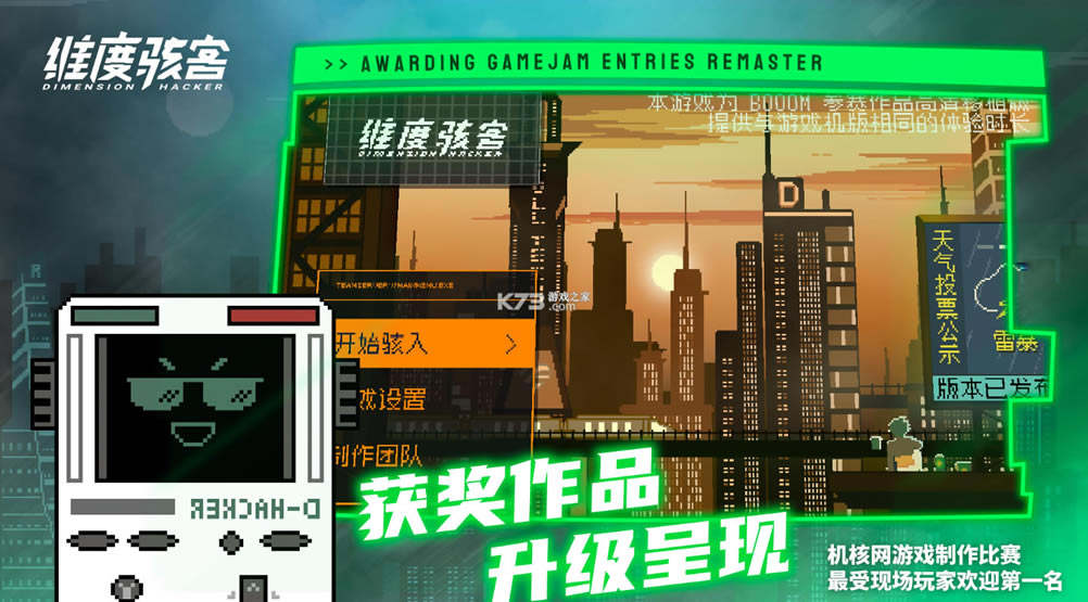 《维度骇客》是机核网第一届 BOOOM 游戏制作比赛,「最受现场玩家欢迎评比」第一名的获奖作品。由一帮第一次制作游戏的伙伴们聚在一起,通过一个月的爆肝开发制作而成。为了能让更多的朋友体验到《维度骇客》的乐趣,开发团队在比赛后全面升级了美术、UI 与操控,并成功将游戏从 GameShell 游戏机平台移植到安卓平台,希望我们的作品能够让你玩得开心!