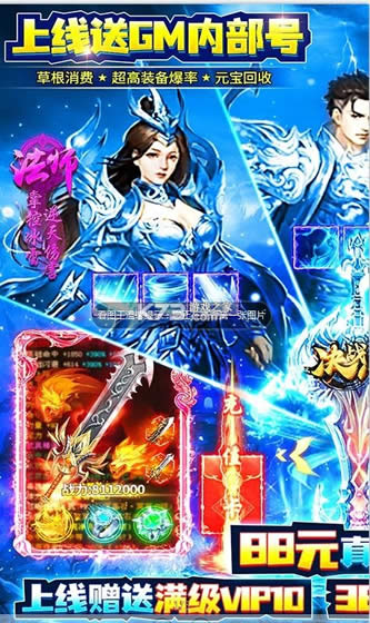 《决战八荒-送GM内部号》上线送满级VIP10,3.8W元宝,100W金币。未来战士限时体验,返利我们玩真的,不是绑元,没有钻石,真回收,送千万元宝,真的送!一包烟钱来入股,从此变成福利号,每天免费领取代金券,普通福利号的福利一点也不普通!
