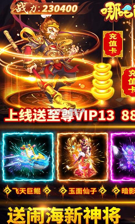 2021超人气封神题材手游《哪吒闹海-万充连抽换金》全新版本火爆上线。上线即送VIP13,绑元宝88888,1000万银两,专属称号。结合唯美绚丽的美术风格、优雅动听的背景音乐、独特多样的坐骑宠物、炫酷华丽的战斗特效,无不在刷新你对回合制游戏的认知。