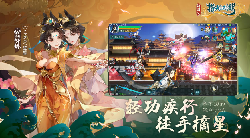 42位名侠集结上阵,独具特色的轻功、武学、羁绊带给少侠专属的游戏体验。攻略各位侠客获得他们的好感,深入了解侠客们的内心世界,且看各位少侠各显神通!