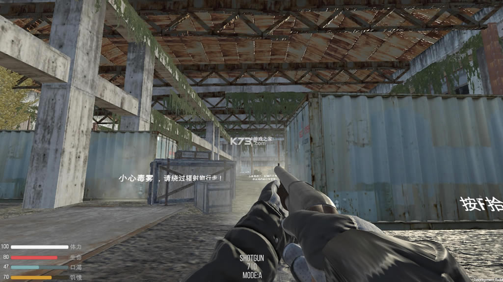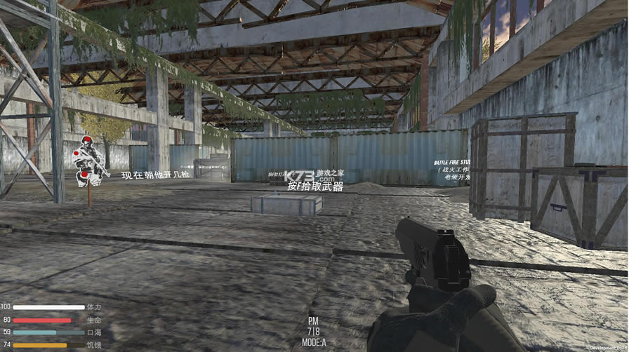 2.添加了背包系统,15种枪械,食物系统,可以建造帐篷和篝火过夜!