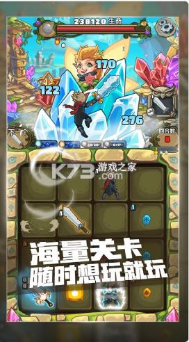 美漫画风结合魔幻的勇者屠龙故事背景,开动脑筋可在方寸之间与各式怪物展开激爽战斗!