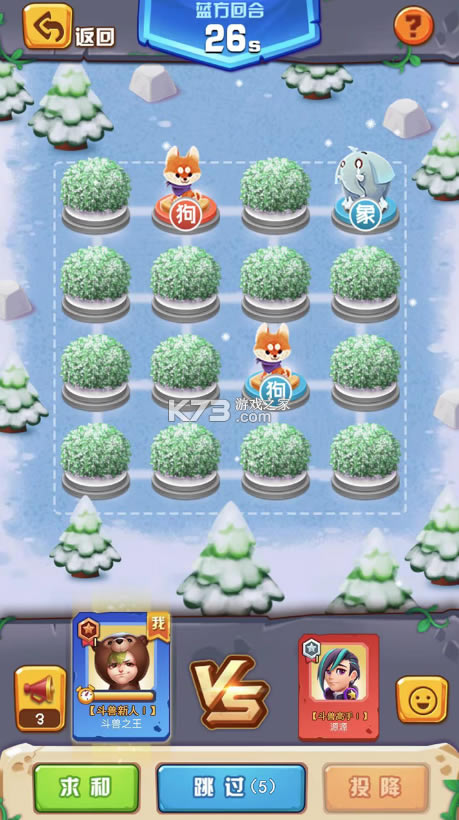 《斗兽之王》一款棋类对战游戏。在游戏中,玩家需要运筹帷幄,控制野兽棋子进行厮杀,成为最后的幸存者,一统丛林。运气与实力并重,直面残酷激烈的丛林法则,弱肉强食,谁是王者?