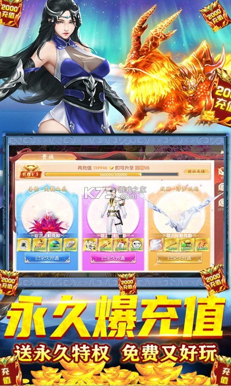 全新3D唯美仙侠手游大作《仙宫战纪-无限抽真充》,开启无限充值兑换模式,全民公平交易,百分百完成财富自由。创角赠送满级VIP15,创角大礼包:绑元*88888、1亿银两、2000元充值卡礼包、海量稀有材料礼包、5-6-7阶战骑直升卡。在线30分钟,还可免费领取至尊V3直升卡,达到一定等级,我们还将送至尊V7直升卡。全新无限充值特权,真充值卡无限制兑换,体验元宝花不完的爽快感。叱咤三界战场,畅享万人膜拜的超快感!