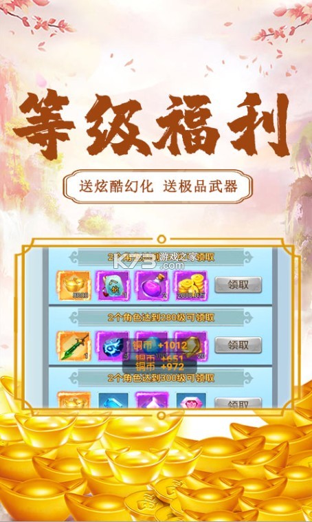 新手礼包:仙勋*1000、1.5倍经验玉露*2、50000铜币