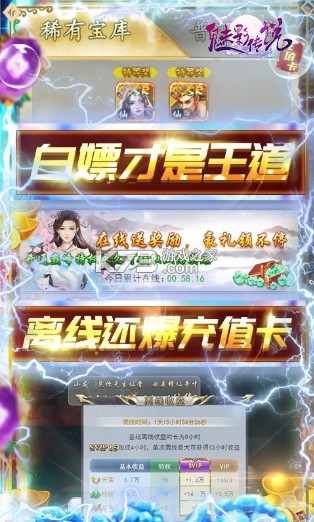 1、上线送svip5(通关第一关),1376元充值卡(邮件领取),888万元宝(邮件领取)