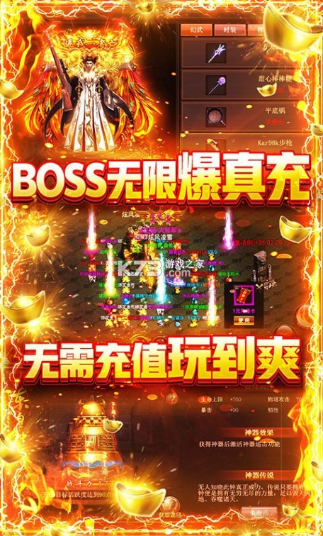 自由PK,打boss全屏掉宝,战法道三职业,行会争夺战。