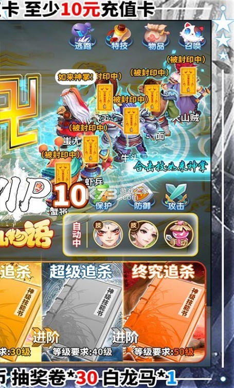 《修仙物语-每日送充值》上线送VIP10,50000元宝,1000W铜币,抽奖卷*30,白龙马*1,每日登录签到送充值卡,至少10元充值卡,全新玩法,上百种技能书,近千种心法搭配,无限打书全红,打书炼妖两不误!